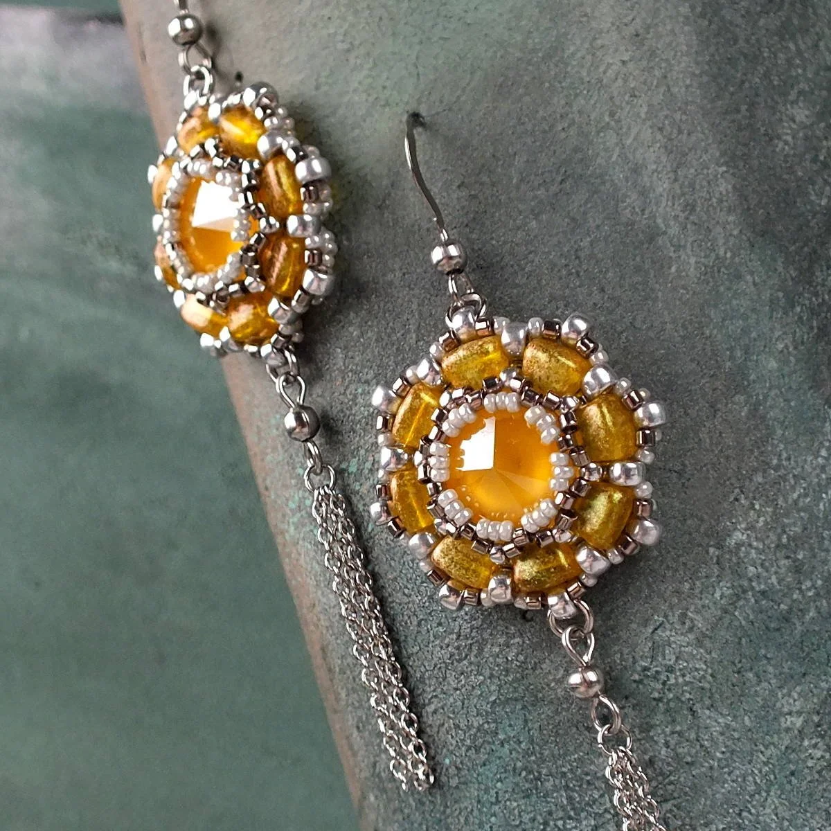 It’s unfortunate that patterns for shaped beads has been on the decline since beading magazines have stopped printing. Even though I was hesitant at first to try them, I have found two hole beads to be both fun and useful They’re great for beginners who want to experiment. The shape of a Nib-Bit in particular form a natural setting for a rivoli, meaning it’s very easy to make very shiny earring and bracelet components.