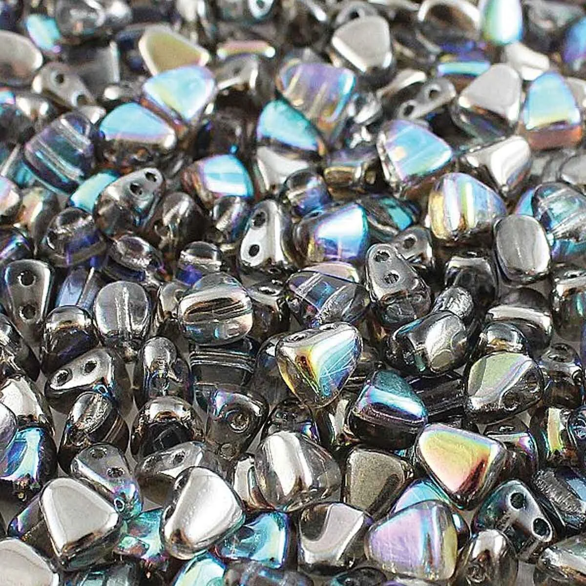 Nib-bits are a type of two hole bead made by Matubo and when I first saw them I thought, Nah… I’ll never use that. Most two hole beads are pretty funky, but these in particular reminded me of candy corn which turned me away from wanting to bead with them at all.
